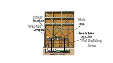🐶 Área de lavado con tarja resistente y de fácil acceso para el aseo de mascotas.