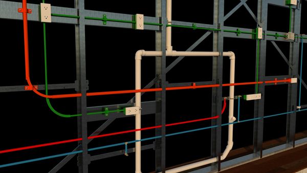 El diseño de un muro con MEP (Mecánica, Eléctrica y Plomería) integra estratégicamente las instalaciones dentro de la estructura del muro para optimizar el espacio y garantizar su funcionalidad.